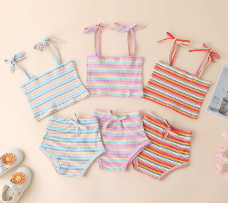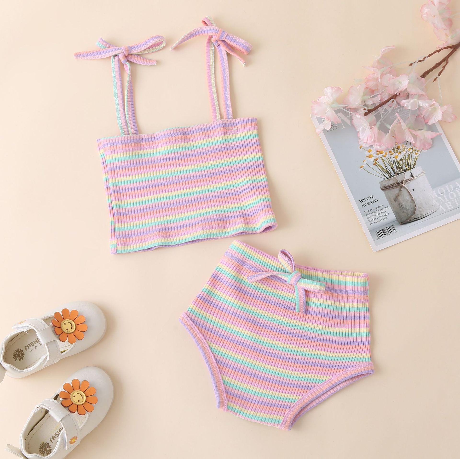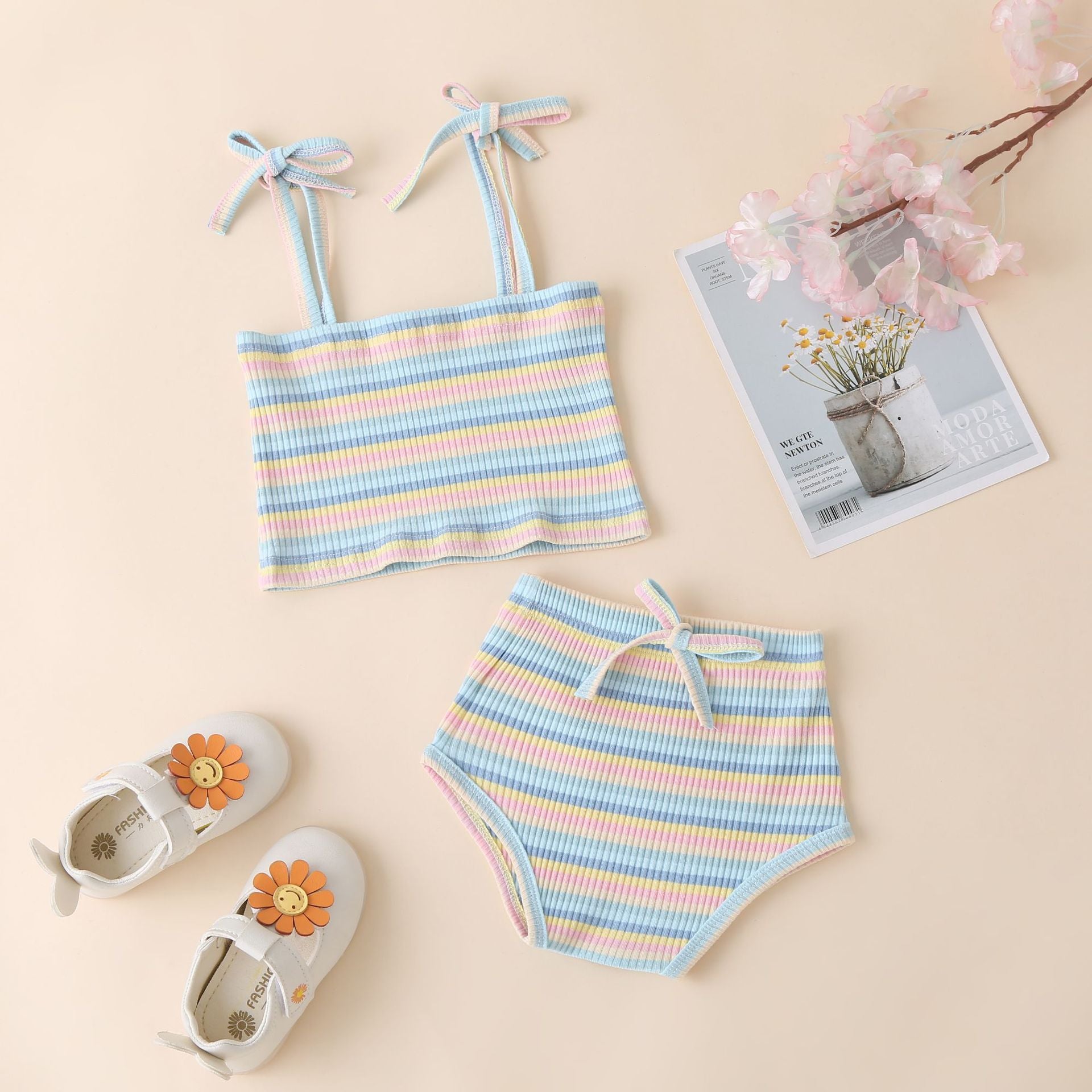 two-piece set ins style children's summer new product color pit striped sling + shorts