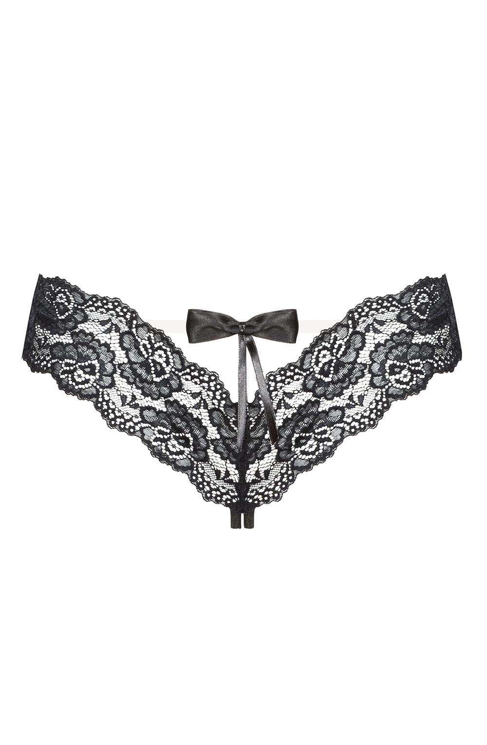 Selina is a very cute lace thong. The lace at front and at the back is connected by a transparent silicone strip allowing for a gorgeous shape! At the front strip is decorated by a satin bow.
