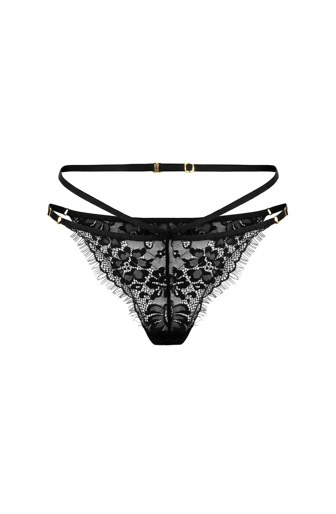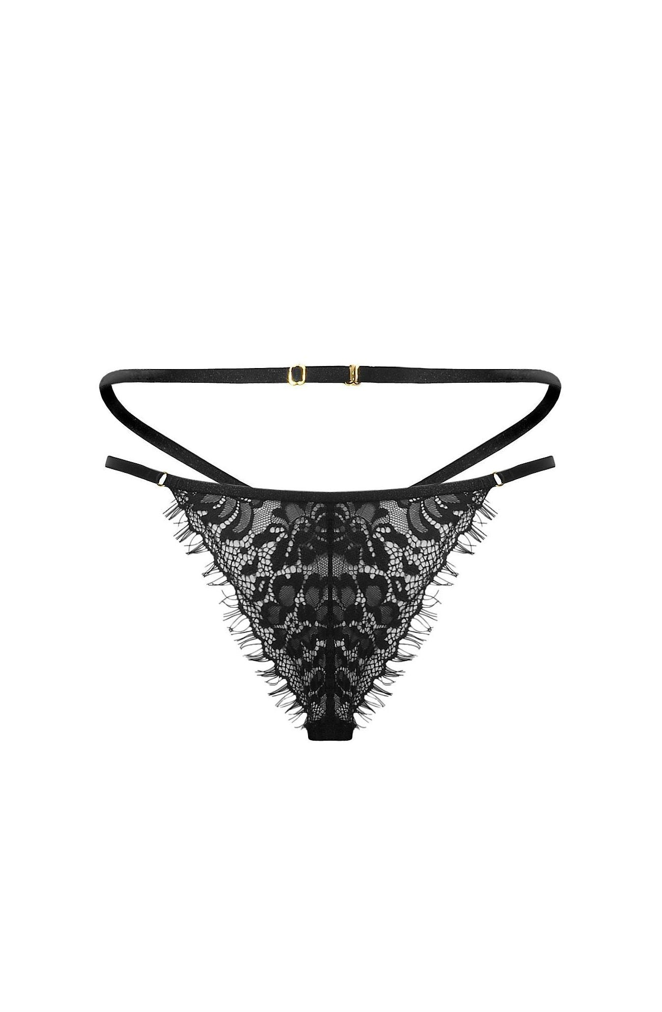 Super sexy matching black thong made with lovely eyelash lace. Adjustable at the sides. The strap detail is also adjustable for the perfect fit!