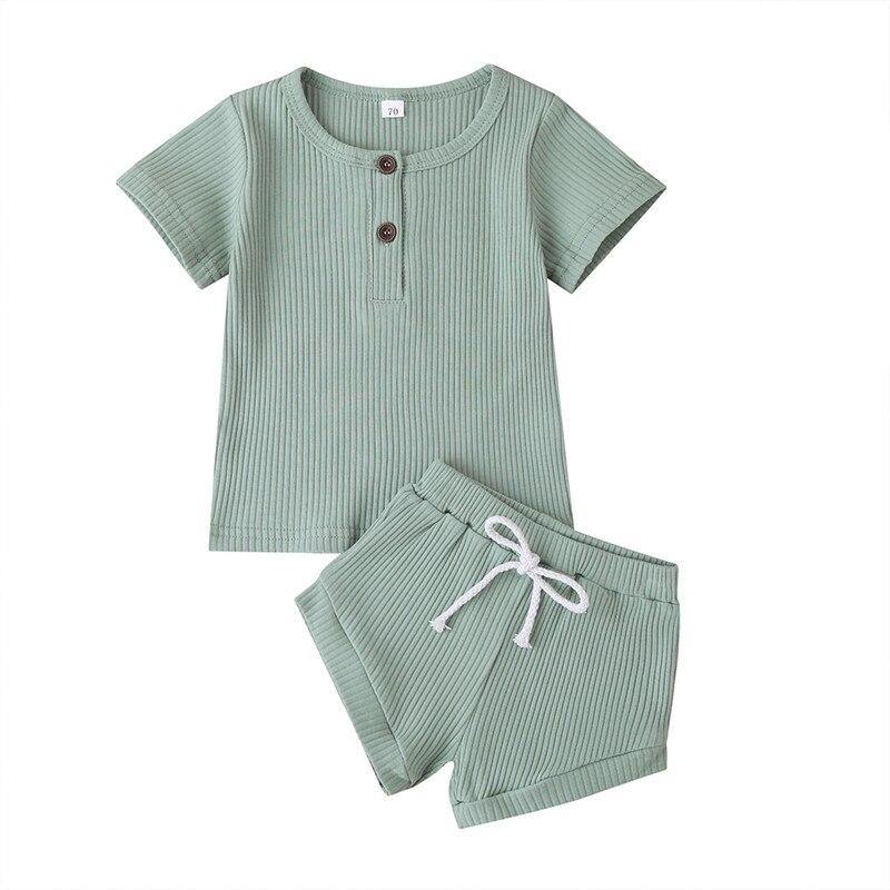 Toddler Baby Boys Girls Summer Clothes, Newborn Ribbed Knitted